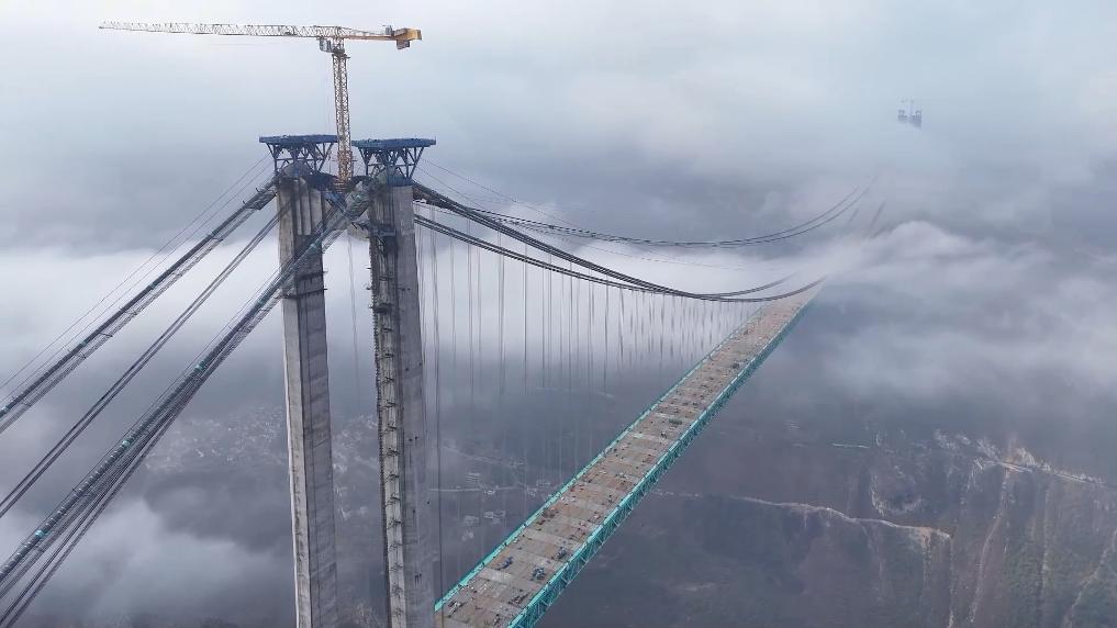 在贵州的崇山峻岭之间,花江峡谷大桥正书写着新的世界纪录。这座全长2890米、主跨1420米的钢桁梁悬索桥,桥面至水面高度达625米,建成后将成为世界第一高桥。