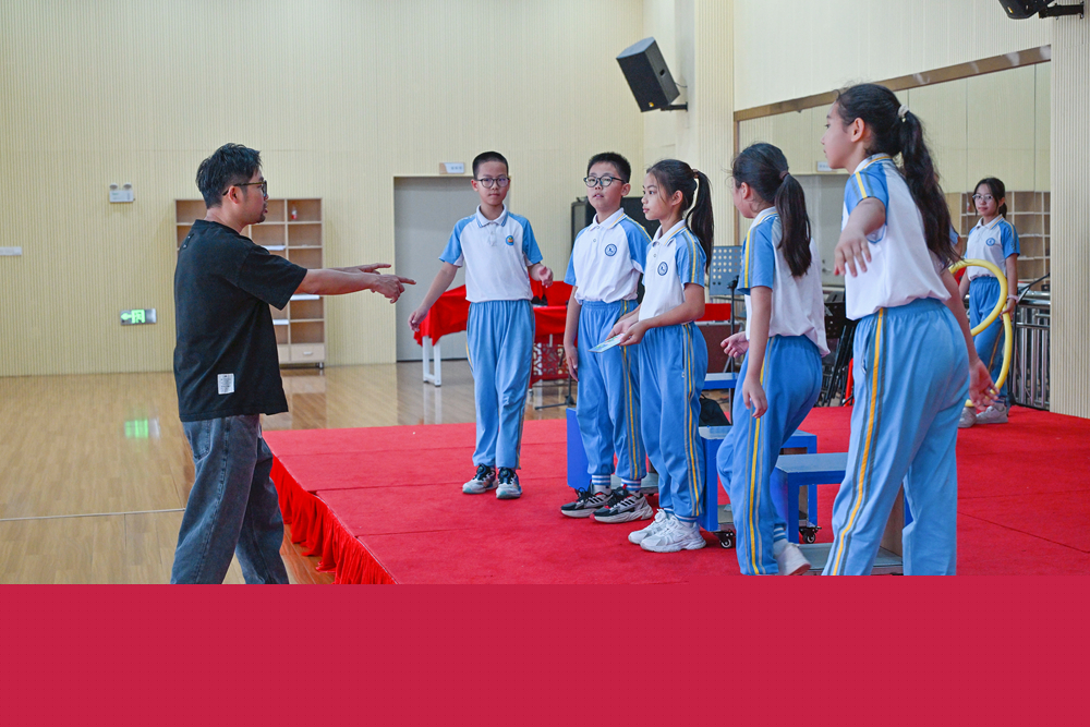 李科指导东莞市寮步镇河滨小学的学生排练。新华社记者 陈朔 摄