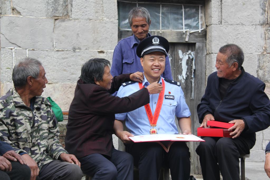 荣获全国“人民满意的公务员”后,申飞飞与鹅屋村老百姓分享喜悦。(受访者供图)