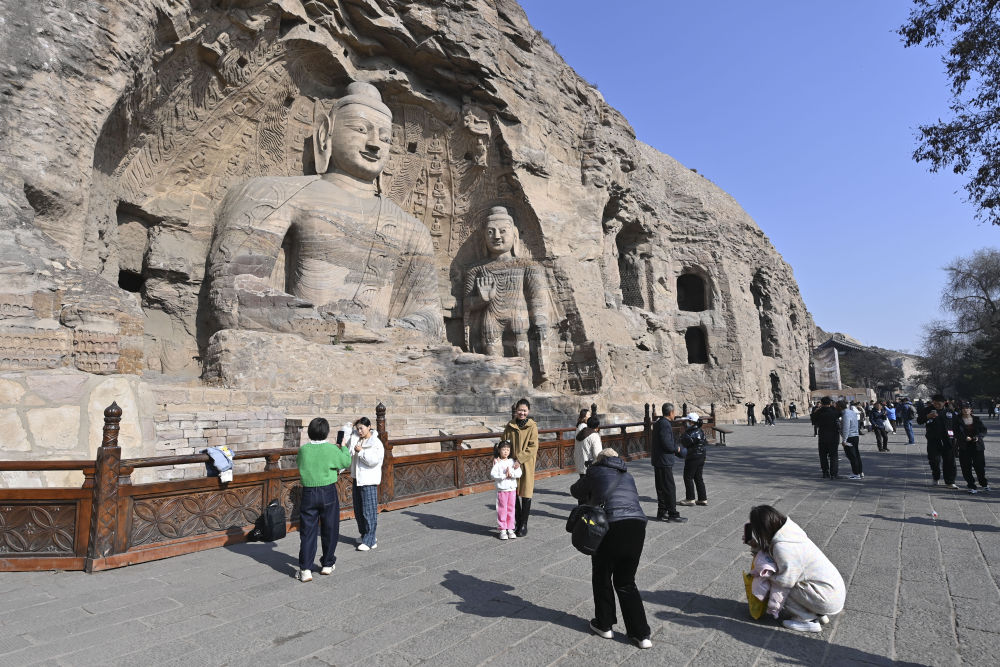 游客在云冈石窟参观(2024年11月7日摄)。新华社记者 杨晨光 摄