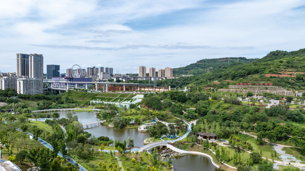 这是7月3日拍摄的重庆市江津区城市公园风光(无人机照片)。新华社记者 黄伟 摄
