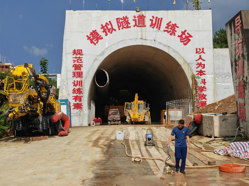 大口径水平救援钻机、大型全地形水陆两栖车、多功能抢险车……走进国家隧道应急救援中铁五局贵阳队的训练基地,各种救援设备映入眼帘,一个队员正在用高压水枪冲洗着一条条排水水带。
