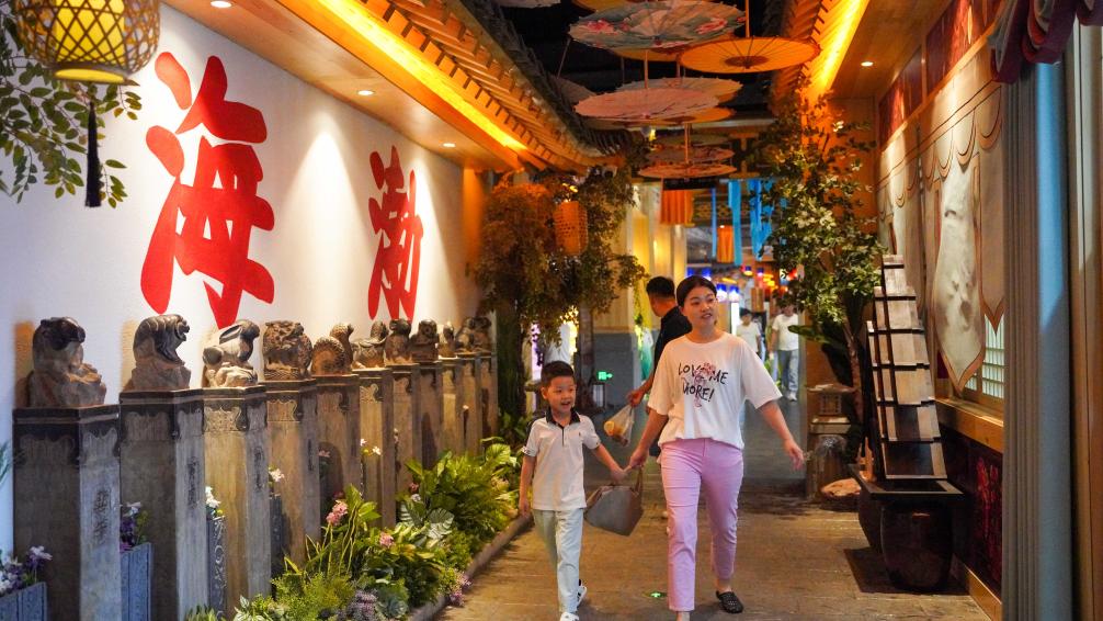 距八连城遗址约4公里处,一座名为渤海古镇的商业综合体人气正旺。这里深入挖掘渤海国在政治、文化、经济等方面效仿唐朝的史实,规划建设古代市集、主题广场、山水廊桥等区域。游客可以在此参与互动体验,欣赏古风乐舞。