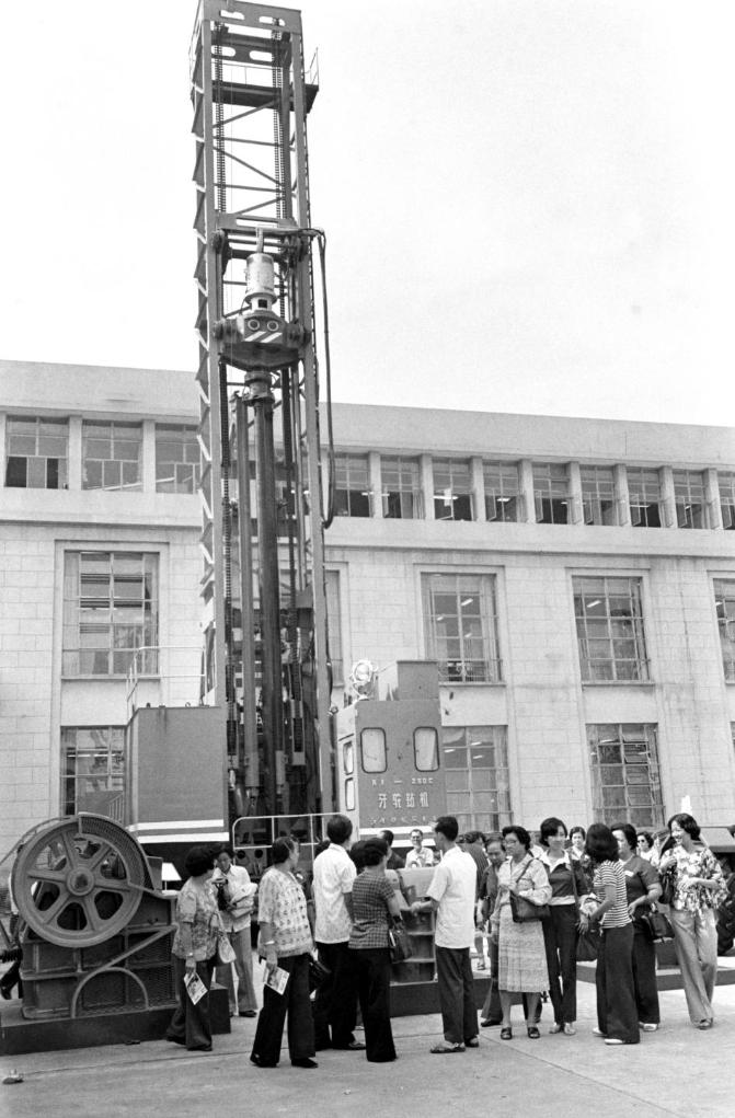 1978年春季中国出口商品交易会4月15日在广州开幕。这是江西铸锻厂制造的大型矿山机械KY2500牙轮钻机在广交会展出。