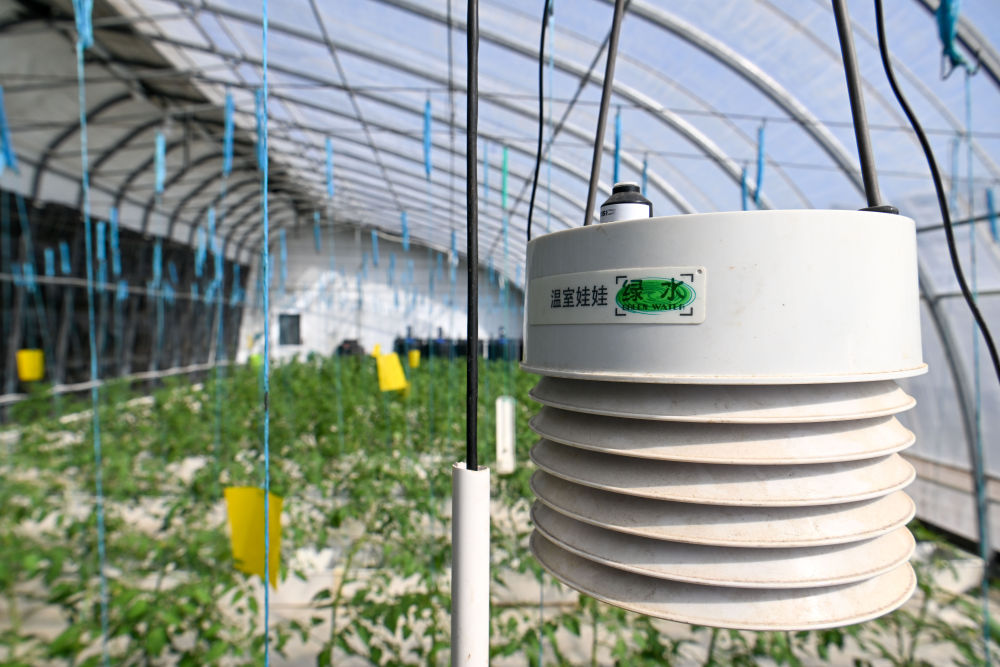 这是3月20日在农芯科技(天津)有限责任公司智慧农业园区智能温室内拍摄的用于监测环境数值的捕捉器。春暖花开时节,科研人员开展多场景的智慧农业田间应用试验,用科技赋能农业生产。新华社记者 孙凡越 摄