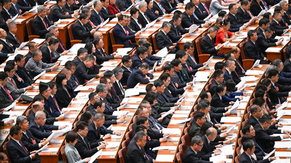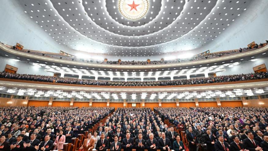 - 第十四屆全國人民代表大會第三次會議5日上午在北京人民大會堂開幕。近3000名全國人大代表肩負人民重托出席大會,履行憲法和法律賦予的神圣職責。