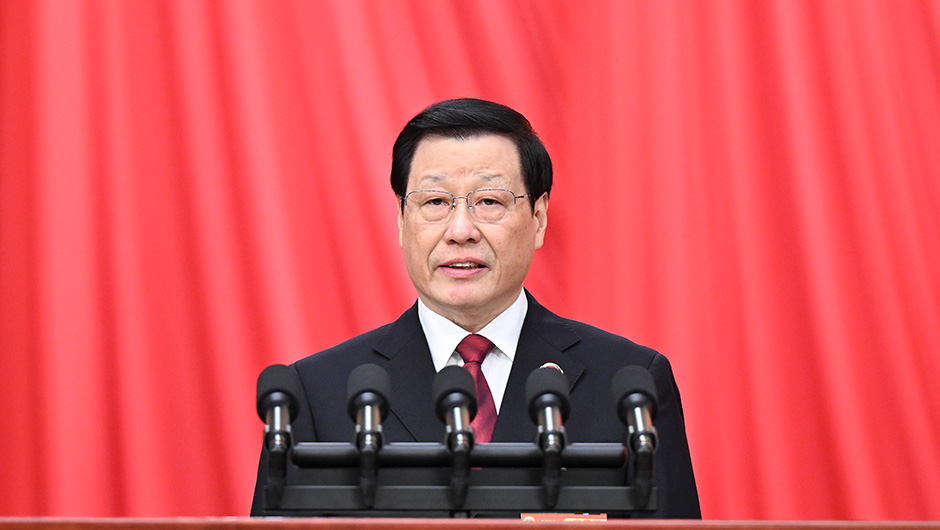 受全国人大常委会委托,赵乐际委员长向大会报告全国人大常委会工作