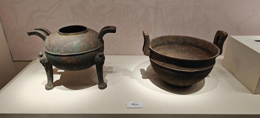 安徽淮南武王墩考古现场临时展馆里展出的青铜器。新华社记者余俊杰 摄