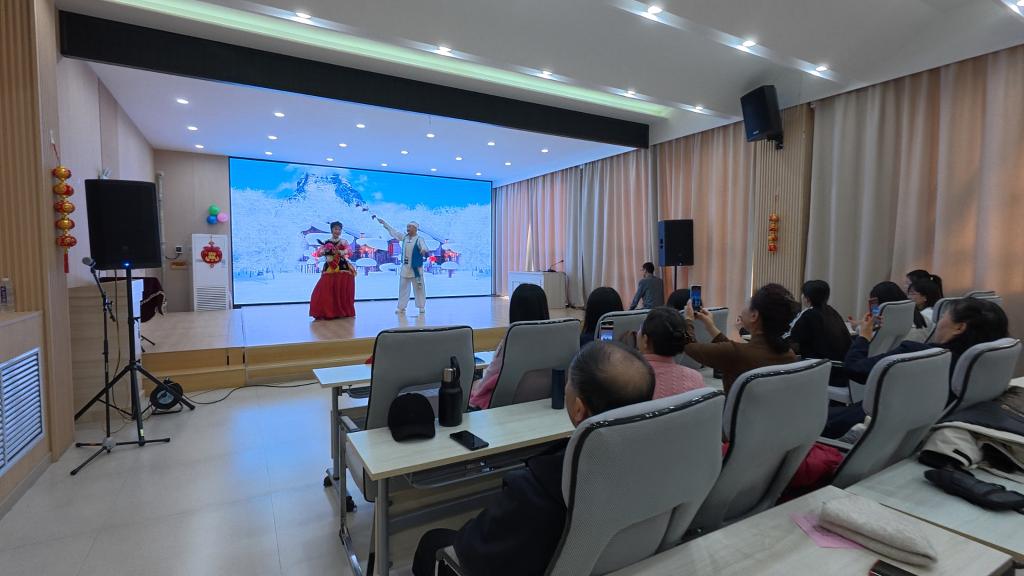 台上的卖力演出,台下的真心笑容,在二人转的“牵线”下,大家其乐融融。