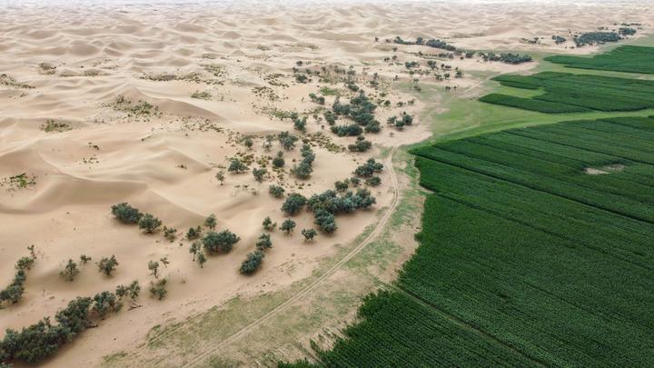 在内蒙古阿拉善盟阿拉善左旗拍摄的乌兰布和沙漠边缘(无人机照片)。新华社记者 贝赫 摄