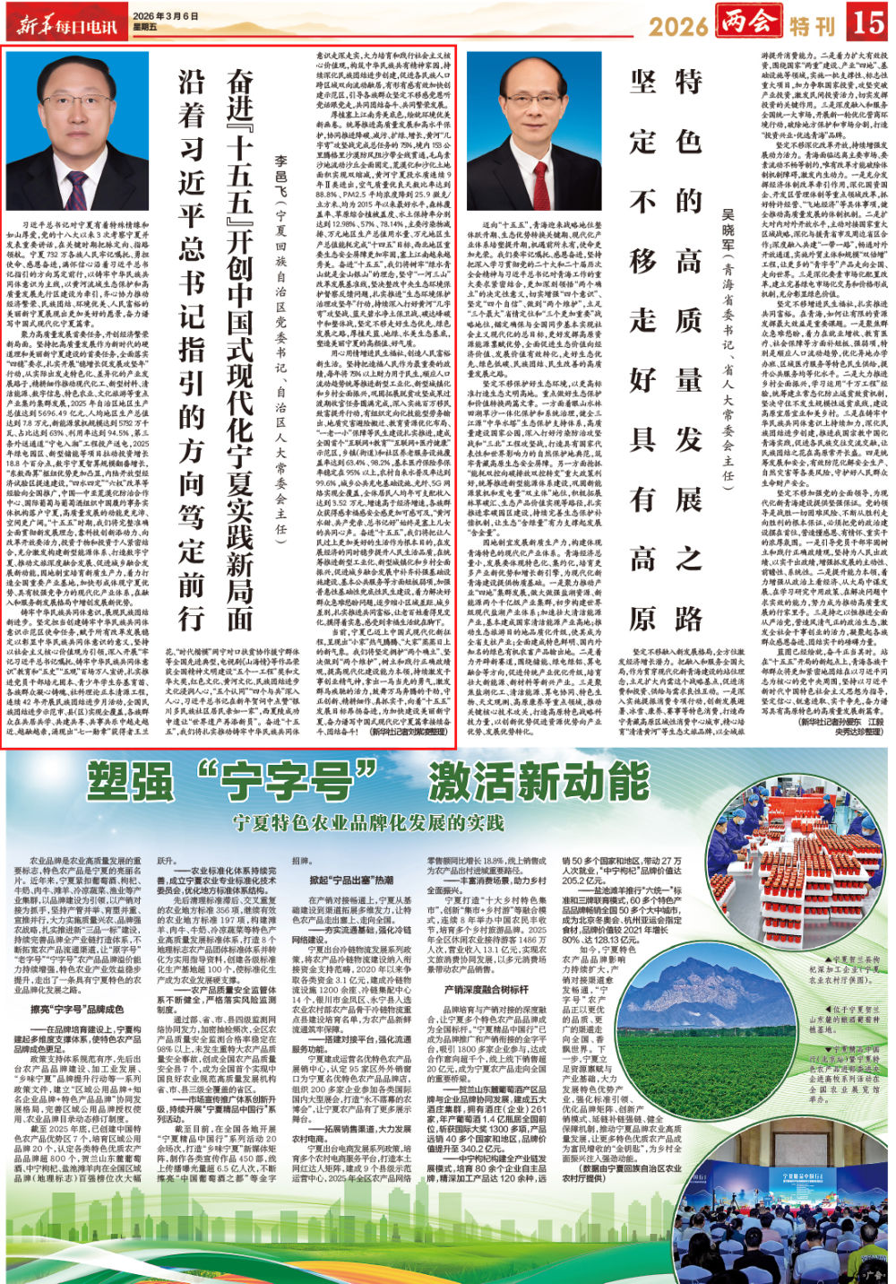 当前,宁夏已迈上中国式现代化新征程,呈现出“小家”热气腾腾、“大家”蒸蒸日上的新气象。我们将坚定拥护“两个确立”、坚决做到“两个维护”,树立和践行正确政绩观,提高现代化建设能力本领,持续激发干事创业精气神,拿出一马当先的勇气,激发群马疾驰的活力,鼓舞万马奔腾的干劲,守正创新、精耕细作、真抓实干,向着“十五五”发展目标昂扬奋进,为加快建设美丽新宁夏、奋力谱写中国式现代化宁夏篇章接续奋斗、团结奋斗! (新华社记者刘紫凌整理)