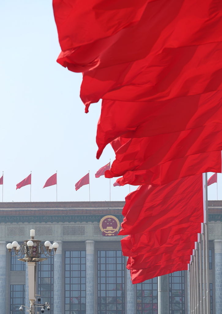 3月8日,全国政协十四届四次会议在北京人民大会堂举行第三次全体会议。图为人民大会堂外景。新华网记者 焦鹏 摄pagebreak