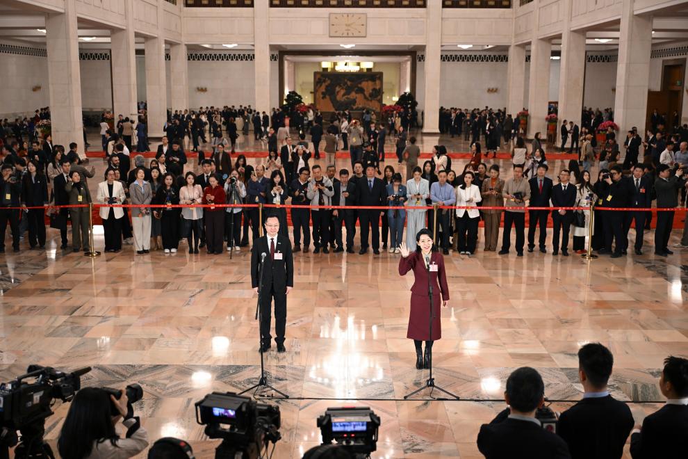 3月12日,第十四届全国人民代表大会第四次会议第三场“代表通道”集中采访活动在北京人民大会堂举行。