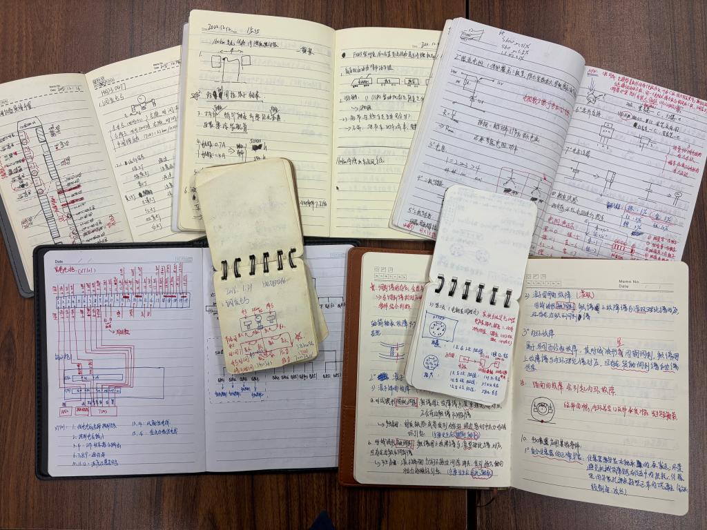 中国铁路上海局集团有限公司上海机车检修段的整车调试组记录的笔记。新华社记者 王辰阳 摄