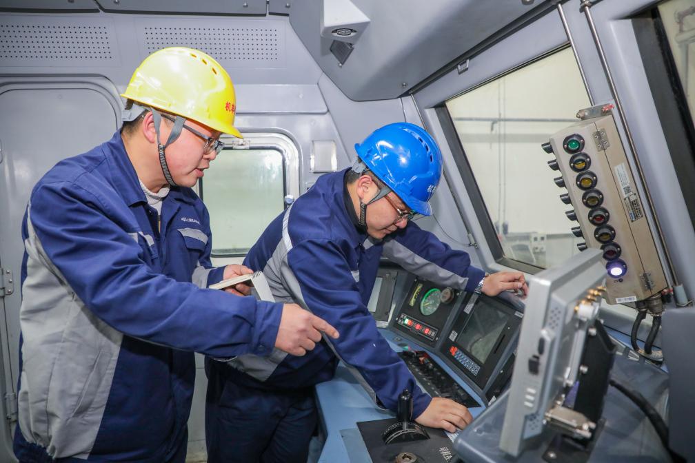 姚耿程正在进行6A机车信息故障排查作业。新华社发(李信宏摄)