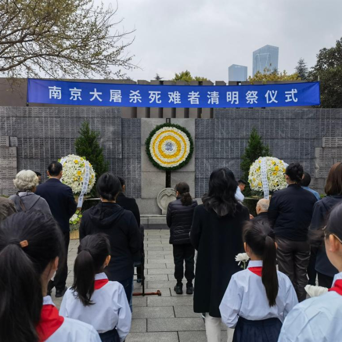 4月3日上午,南京大屠杀死难者遗属、幸存者后代、学生代表等在侵华日军南京大屠杀遇难同胞纪念馆举行清明祭仪式,祭奠89年前遇难的亲人、同胞。