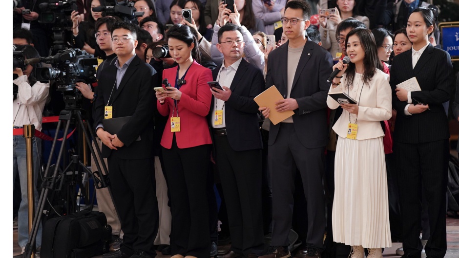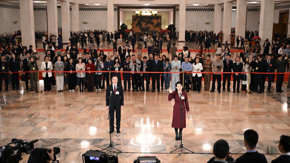 2026年3月12日14:00,在人民大会堂中央大厅北侧举行十四届全国人大四次会议第三场“代表通道”集中采访活动,邀请部分全国人大代表接受采访。