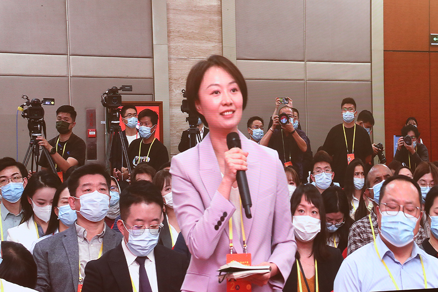 中國共產黨第二十次全國代表大會新聞發言人2022年10月15日(星期六)16時30分在人民大會堂舉行新聞發布會。圖為