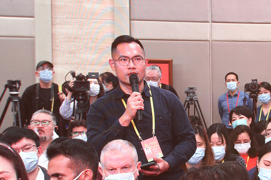 中國共產黨第二十次全國代表大會新聞發言人2022年10月15日(星期六)16時30分在人民大會堂舉行新聞發布會。圖為