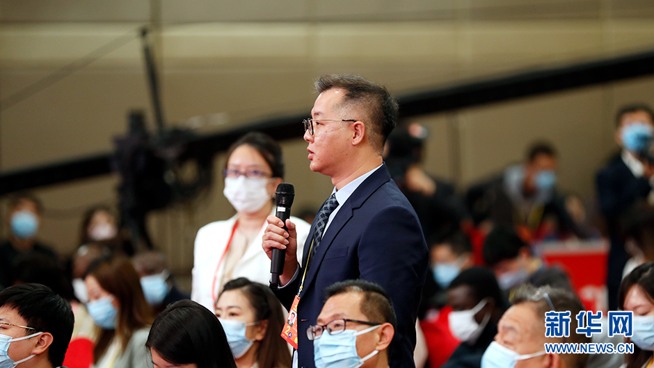10月17日(星期一)15:00,二十大新聞中心在梅地亞新聞中心二層新聞發(fā)布廳舉辦第二場記者招待會(huì)。圖為中央廣播電視總臺記者在分會(huì)場提問。(新華網(wǎng) 陳杰 攝)
