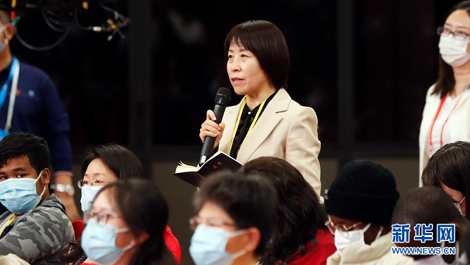 10月18日(星期二)19:30,二十大新聞中心在梅地亞新聞中心二層新聞發(fā)布廳舉辦第二場集體采訪。圖為黨建雜志社記者在分會(huì)場提問。(新華網(wǎng) 陳杰 攝)