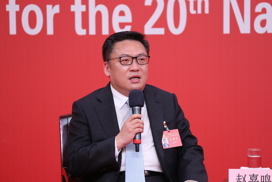 10月18日,中國共產黨第二十次全國代表大會新聞中心舉行集體采訪。黑龍江、上海、江蘇、浙江、安徽、福建、江西代表團新聞發(fā)言人出席,介紹代表團學習討論二十大報告情況,并回答記者提問。這是上海市委常委、宣傳部部長趙嘉鳴在回答記者提問。(新華網發(fā))