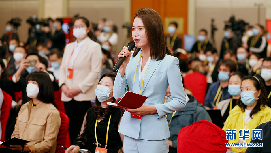 10月19日(星期三)15:00,二十大新聞中心在梅地亞新聞中心二層新聞發布廳舉辦第三場集體采訪。圖為山東廣播電視臺記者在分會場提問。(新華網 陳杰 攝)