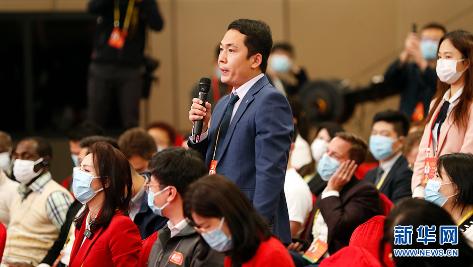 10月19日(星期三)15:00,二十大新聞中心在梅地亞新聞中心二層新聞發(fā)布廳舉辦第三場(chǎng)集體采訪。圖為中新社、中新網(wǎng)記者在分會(huì)場(chǎng)提問(wèn)。(新華網(wǎng) 陳杰 攝)