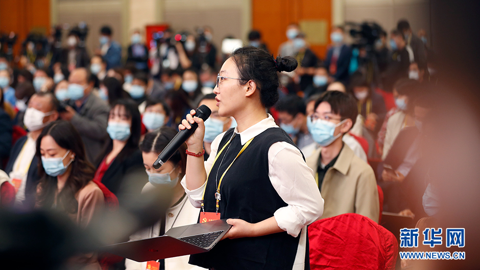 10月20日(星期四)10:00,二十大新聞中心在梅地亞新聞中心二層新聞發(fā)布廳舉辦第四場(chǎng)記者招待會(huì)。圖為北京青年報(bào)記者在分會(huì)場(chǎng)提問(wèn)。(新華網(wǎng) 陳杰 攝)
