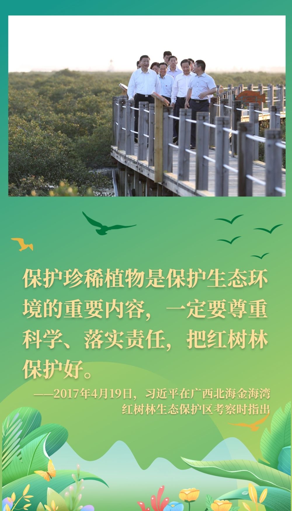 长期以来,习近平总书记一直十分关注红树林保护,多次对红树林保护做出具体指示、提出明确要求。