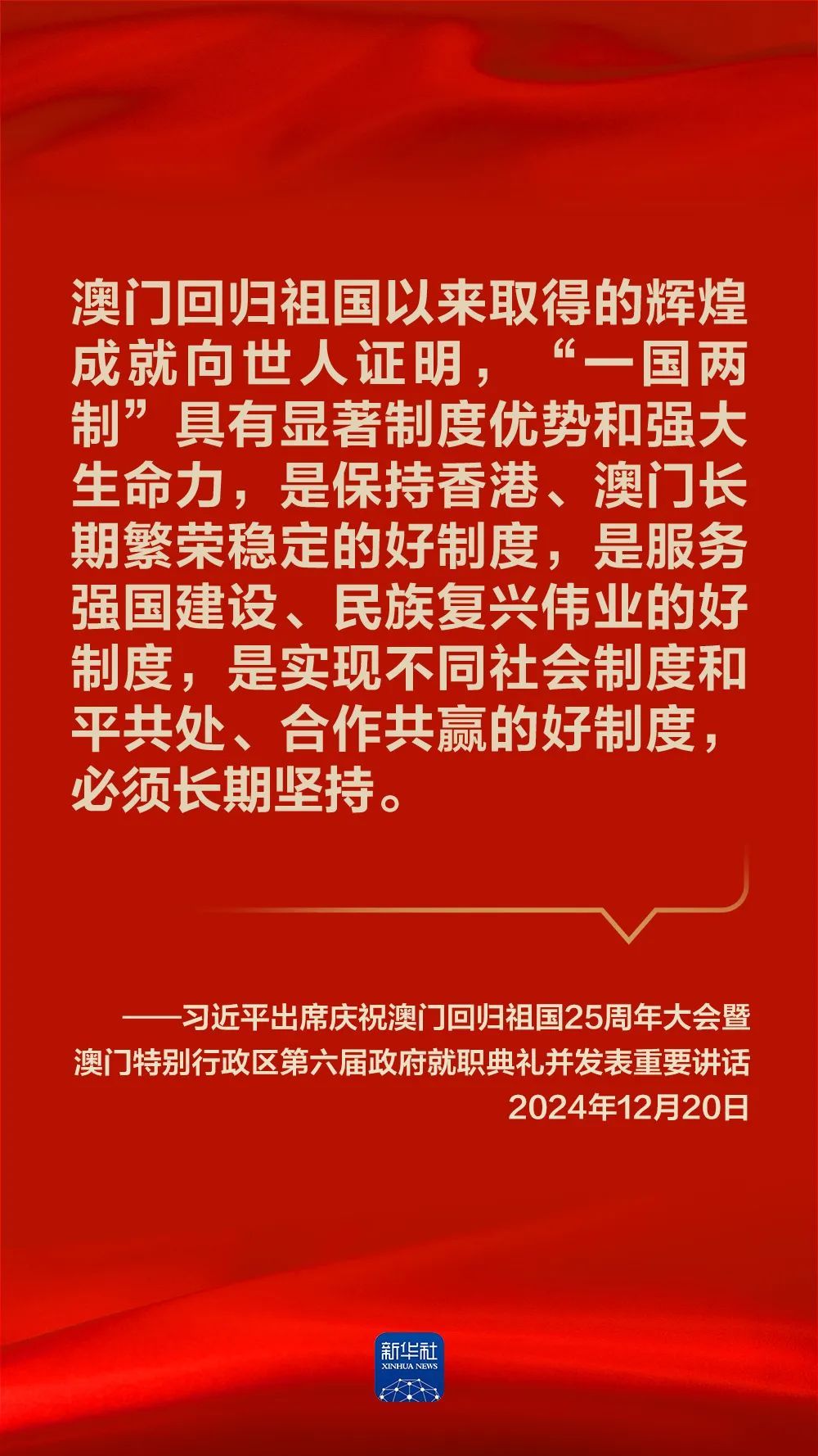 金句海报|习近平在庆祝澳门回归祖国25周年大会暨澳门特别行政区第六届政府就职典礼上的讲话-新华网