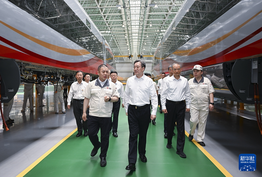 7月7日至9日,中共中央政治局常委、国务院副总理丁薛祥在黑龙江、吉林调研。这是7月8日,丁薛祥在中车长春轨道客车股份有限公司调研。新华社记者 张领 摄