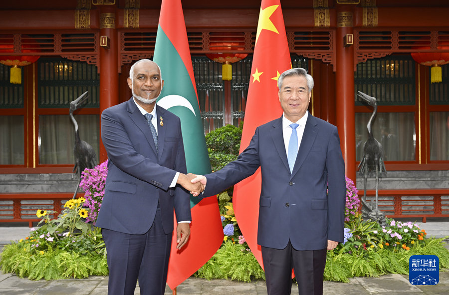 9月2日,中共中央政治局常委、中央纪委书记李希在北京会见来华出席2025年上海合作组织峰会和纪念中国人民抗日战争暨世界反法西斯战争胜利80周年活动的马尔代夫总统穆伊兹。新华社记者 岳月伟 摄