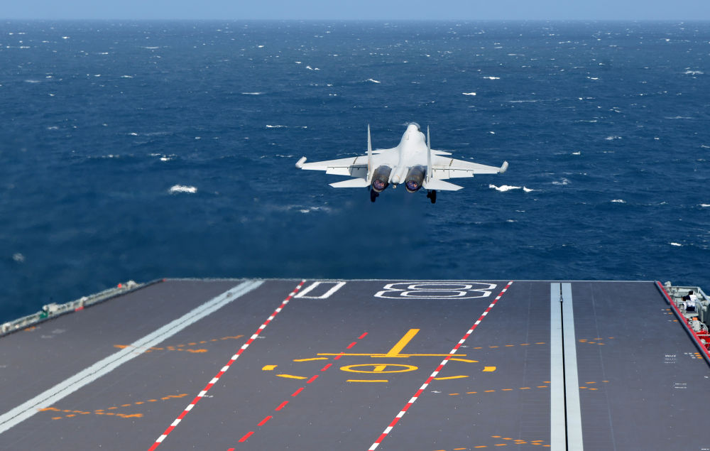 2025年11月,海军福建舰开展入列后首次海上实兵训练。任务期间,由福建舰、延安舰、通辽舰等多艘舰艇组成的航母编队,先后开展编队航行、舰机联合搜救、舰载机起降等多个科目训练。这是歼-15DT舰载机弹射起飞。