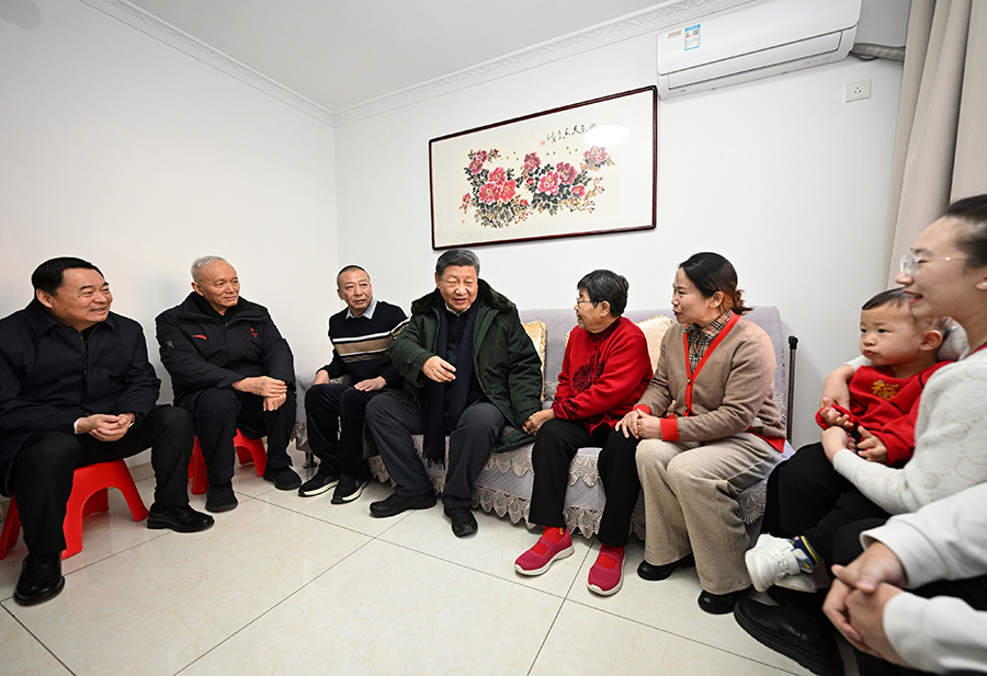 2025年1月23日,习近平总书记在沈阳大东区长安街道长安小区考察时,走进居民郎素兰家中看望。新华社记者 李学仁 摄