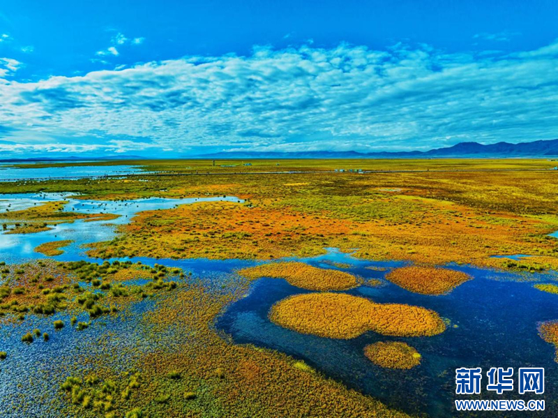 资料图片:俯瞰若尔盖花湖,碧波荡漾,一望无垠。