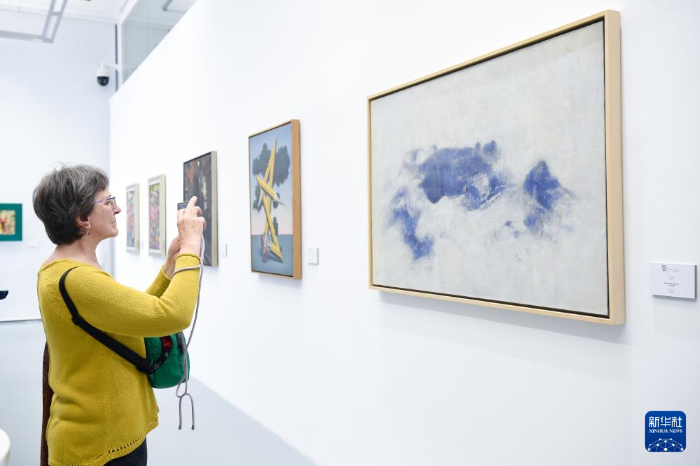 4月16日,在西班牙首都马德里,参观者在“自然而然——中国当代艺术展”上参观。