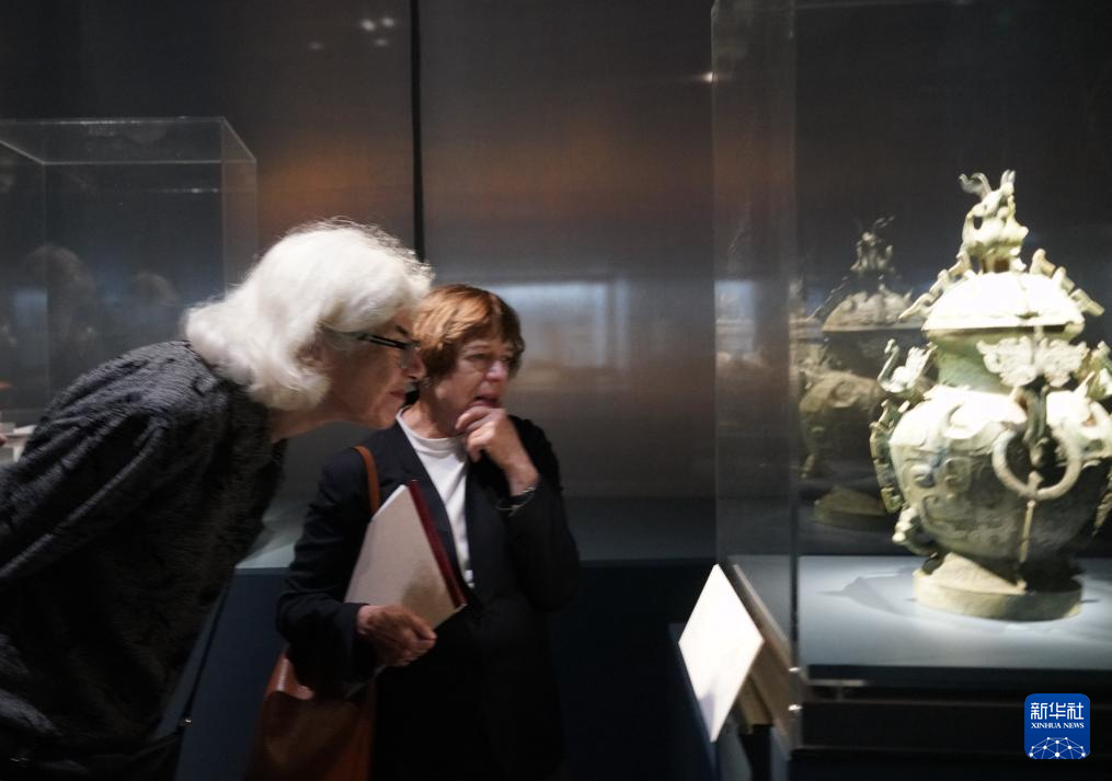 4月19日,观众在美国旧金山亚洲艺术博物馆举办的“凤凰故国——青铜时代曾楚艺术展”上参观。
