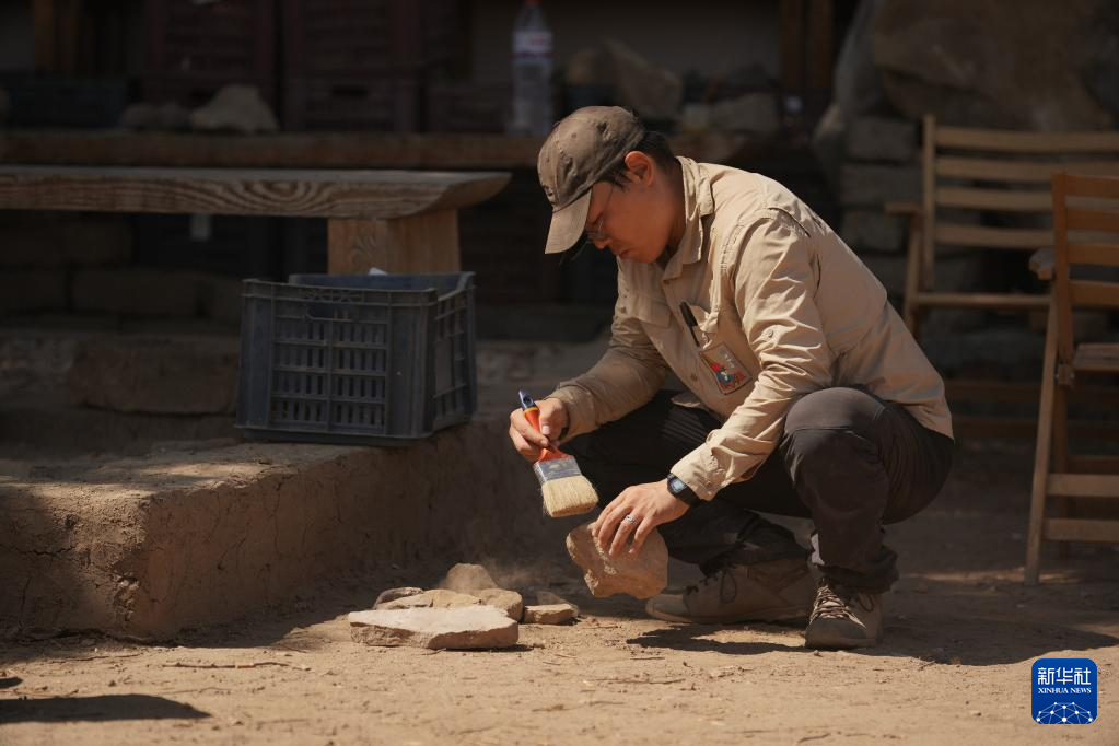 5月1日,中方考古队员高伟在中埃卢克索孟图神庙联合考古项目所在地工作。