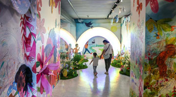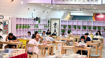 在河南省禹州市神垕镇,河南农业大学的学生在挑选钧瓷产品(7月3日摄)。