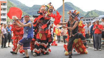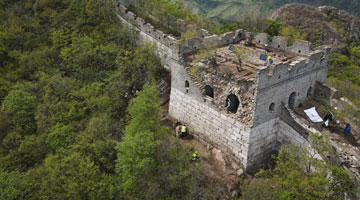 在河南省禹州市的驺虞窑内,负责人任晓飞在开窑后查看烧成效果(7月2日摄)。