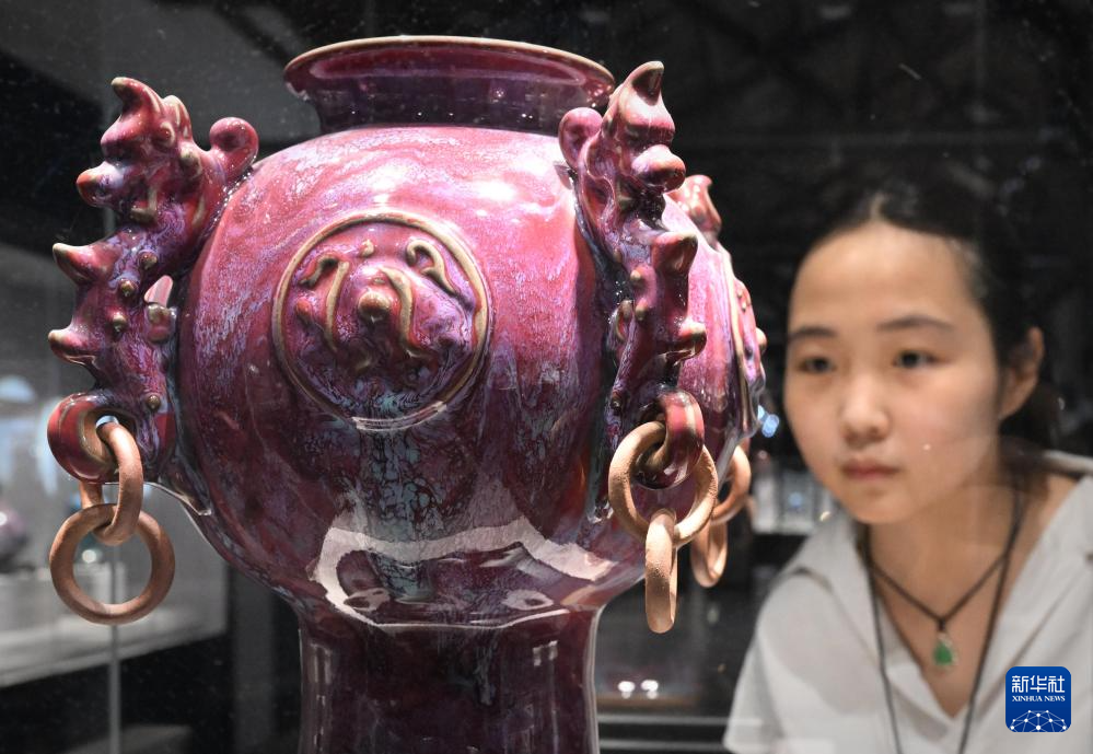 这是在位于河南省禹州市的钧官窑址博物馆内拍摄的钧窑展品(7月3日摄)。