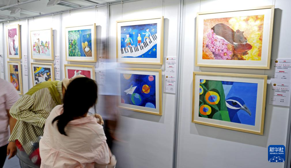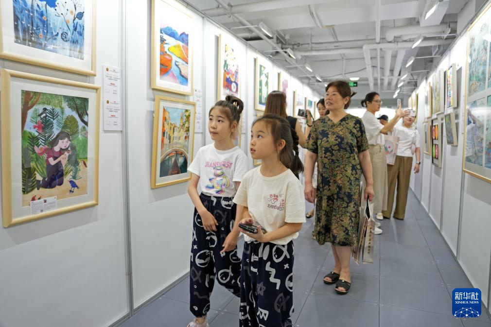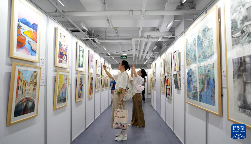 7月9日,观众在北京参观展出作品。
