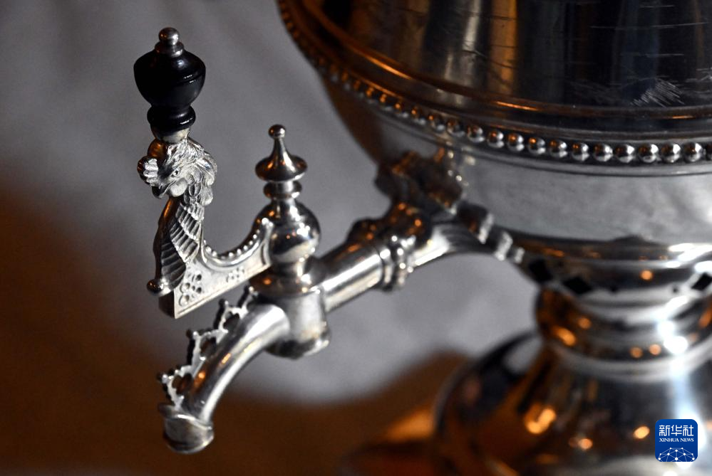 这是即将展出的船形杯局部(11月13日摄)。船形杯是古代俄罗斯最具特色的容器之一。在宴会上,船形杯被用来盛放最受欢迎的俄罗斯饮料——蜂蜜或蜂蜜酒。