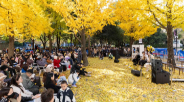 12月9日,西洛(左一)和同事交流西藏传统面具制作心得。