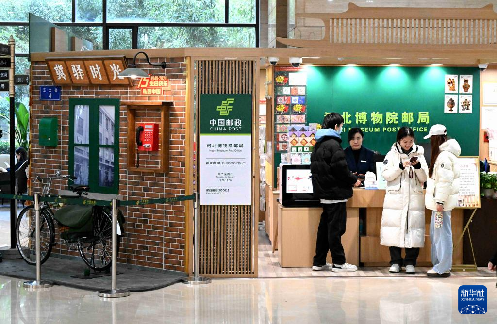 12月11日,游客在河北博物院主题邮局选购文创产品。