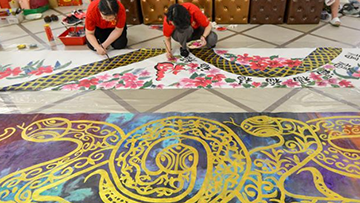 1月6日,在哈尔滨太阳岛雪博会园区,游客观赏本届雪博会主塑《雪艳春》(无人机照片)。《雪艳春》以“百鸟朝凤”为灵感源泉,鸟与梅花元素相互交织,长100米,高30米。