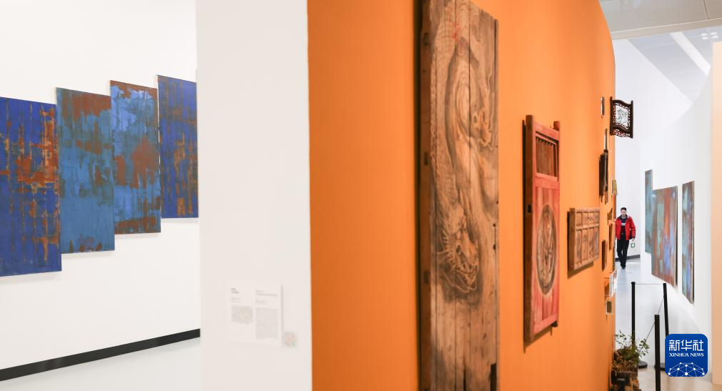 2月27日,一名参观者在舟山美术馆内拍摄。