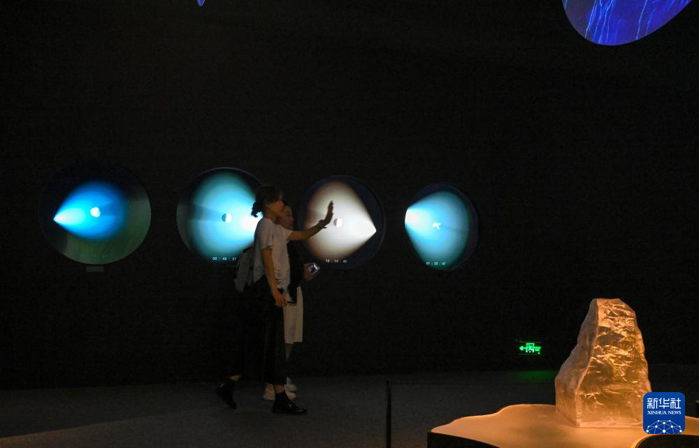 7月2日,观众参观宇宙碰撞交互装置作品。