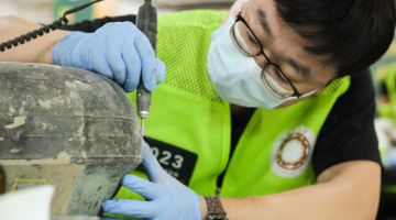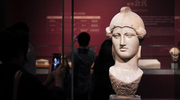 7月10日,观众在南京博物院观看展览的球形视频介绍。